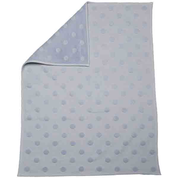 Dit zachte babydekentje heeft gebrushte stippen als motief, de achterkant van het dekentje is juist gebrushed, terwijl de stippen plat geweven zijn.
