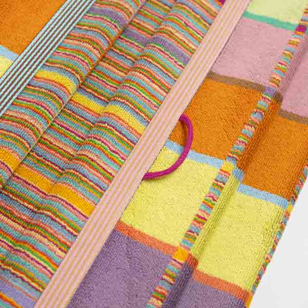 In tegenstelling tot de thee- en keukenhanddoeken en multi-functionele doekjes, matchen de badhanddoeken perfect met de badmatten van Foekje Fleur.