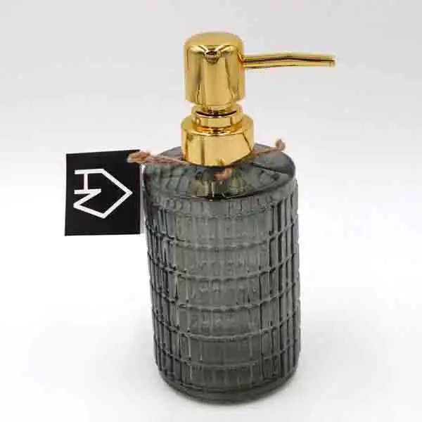 Handen wassen kun je ook in stijl doen. Met dit glazen en gouden zeep pompje heb je een styling object èn schone handen tegelijkertijd.