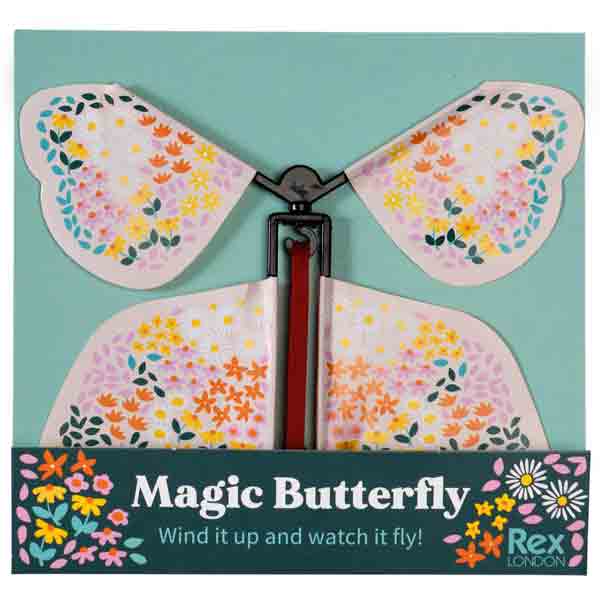 Verras iemand met de Rex London Magische Vlinder! Deze vrolijke vlinder werkt op een rubberen band en komt tot leven zodra je hem opdraait (minstens 30 keer aanbevolen). Bij het loslaten fladdert hij vrolijk door de lucht.