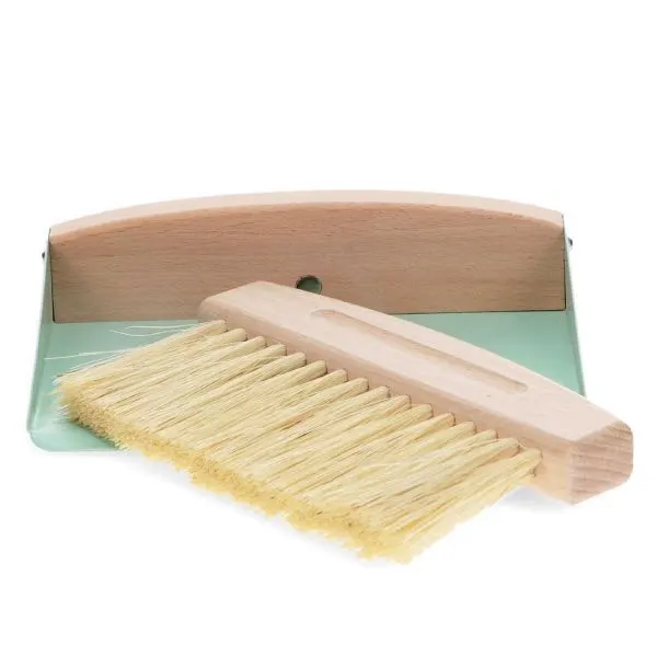 Ga voor minder plastic Ʃn een opgeruimd huis. Deze compacte veger en blikset is gemaakt met een houten handvat, natuurlijke plantaardige borstelharen en een stevig metalen blik in een zachte pistachegroene kleur. Ideaal voor het snel wegvegen van kruimels en klein vuil van je tafel, keukenblad of werkruimte.