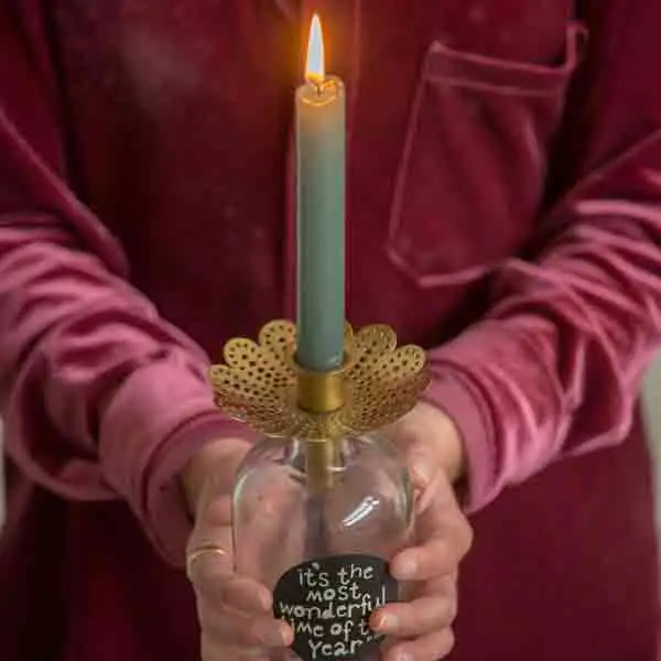 Let erop dat de kaars niet te zwaar is, zodat de kandelaar stabiel blijft staan. Een eenvoudige en creatieve manier om extra sfeer toe te voegen aan je interieur, leuk voor op tafel, in de vensterbank of als klein cadeau.